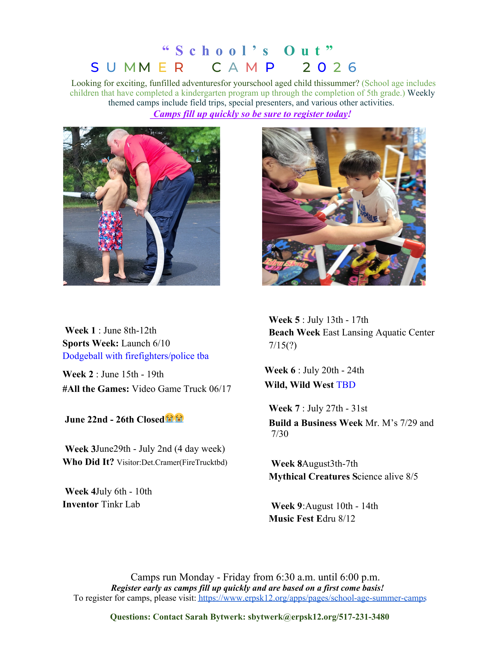 Looking for care for your school-age children? *School-age children are those who have started Kindergarten through the last day of fifth grade* Hurry and sign them up for a fun-filled Summer of weekly themed camps, field trips, special presenters, and various other activities!